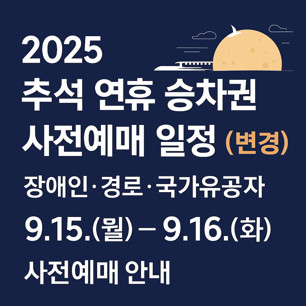 #추석승차권 #교통약자사전예매 #2025추석 #코레일예매 #KTX예매 #추석기차표 #코레일공지 #경부선 #호남선 #강릉선 #전라선 #중앙선